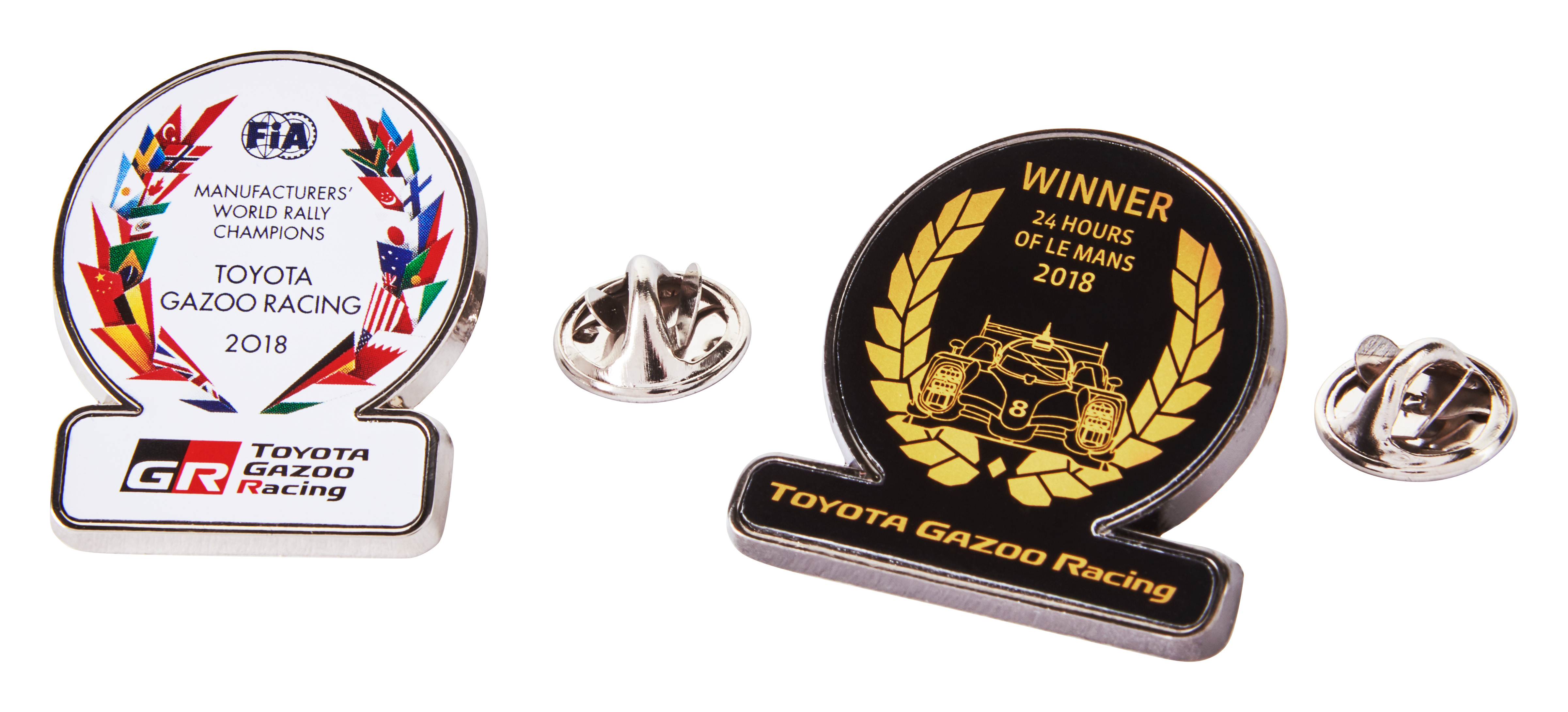 Celebrate an incredible year for TOYOTA GAZOO Racing with this double pin badge, showing off the remarkable achievements of the teams in 2018, winning both 24 Hours of Le Mans and achieving the World Rally Championship 2018 Manufacturer’s Title. Both pin badges feature a secure butterfly clip to the back and are presented in a smart branded gift box and sleeve.