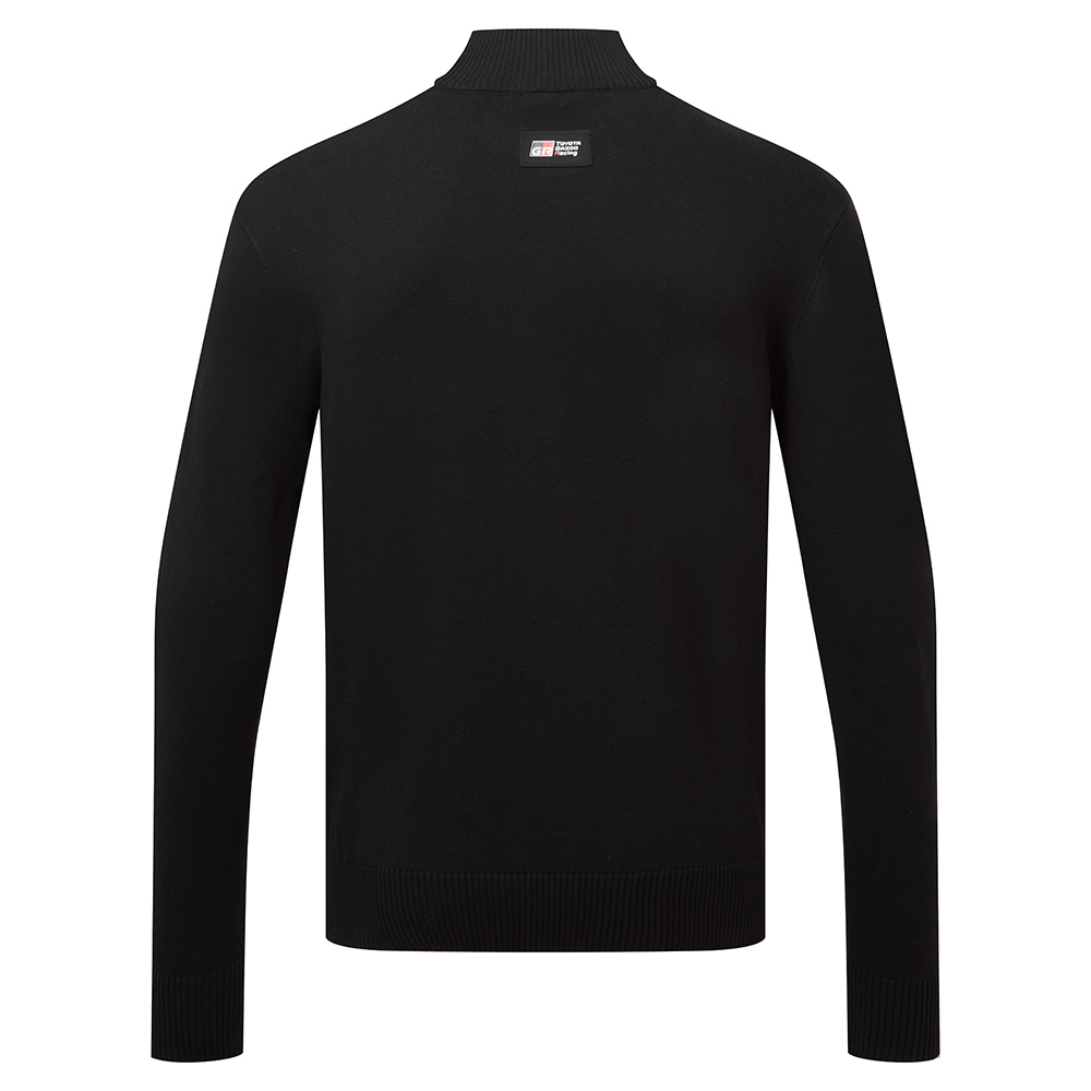 Our TOYOTA GR knitted sweater, has been meticulously crafted, offering superior comfort and style. An excellent mid layer, featuring a fine contrasting waffle detailing embellished with a rubberised GR logo to the front, complemented by a smaller TGR logo on the reverse. Its ribbed neck collar and quarter-zip design with branded zip pulls finishes off this classic sweater, perfect for days on the road.