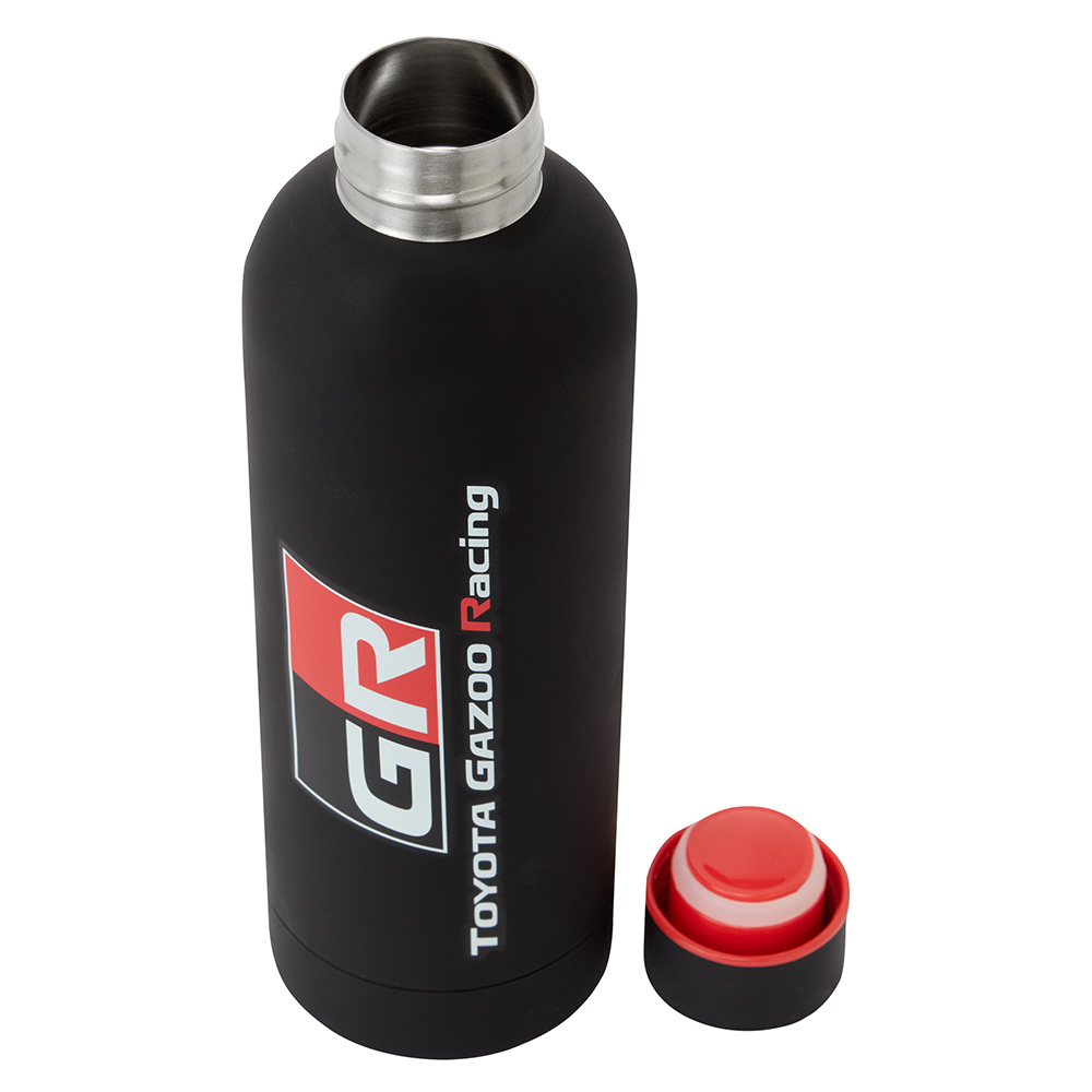 Crafted with a soft feel grip and a sturdy metal twist cap, the TOYOTA GR sports water bottle is a reliable companion for your everyday activities. Its vacuum insulation ensures that your cold beverages stay chilled for 12 hours, while your hot drinks remain warm for 6 hours. With the TOYOTA GAZOO Racing logo proudly emblazoned on its side, this durable and leak-proof bottle is perfect for all sporting activities or even a day at the office. Presented in its own soft touch gift box. Approximate liquid capacity is 537ml. Hand wash recommended.