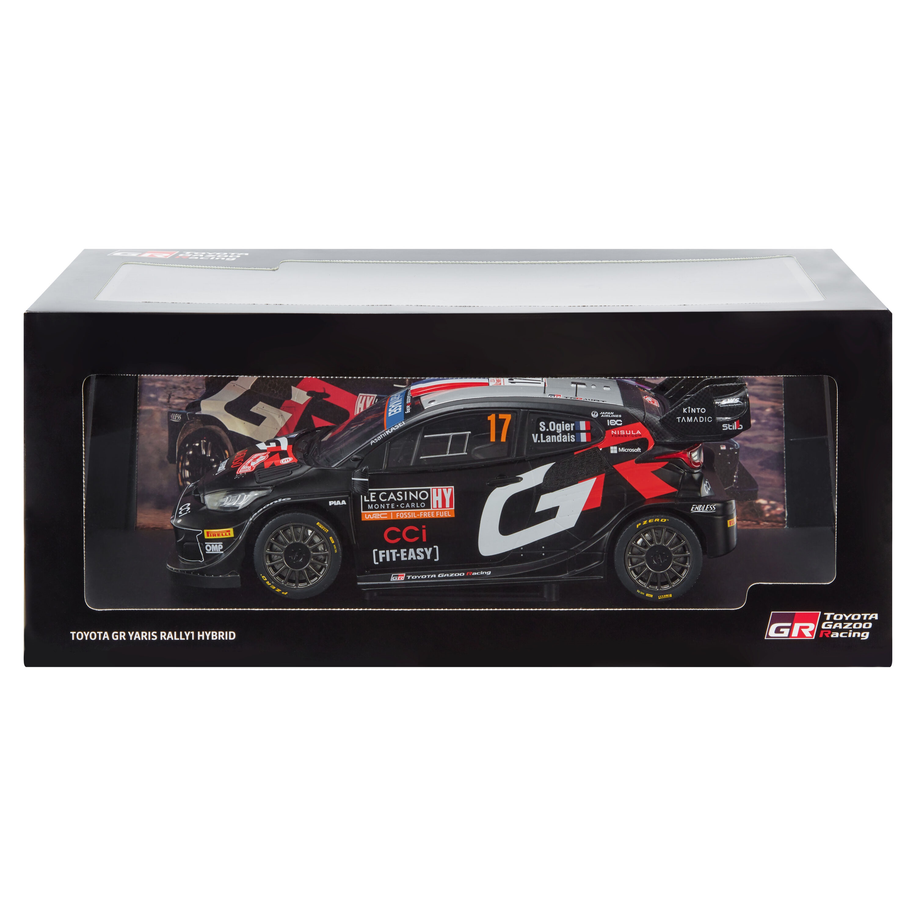 A 1-18 scale replica model of the TOYOTA GR YARIS RALLY1 HYBRID - No.17 car driven by Sebastien Ogier and co-driver Vincent Landais at the 2024 Rallye Monte Carlo. Individually finished and mounted; presented in a branded box. A true collector's model which includes all the finer details of the TOYOTA GR YARIS RALLY1 HYBRID - No.17 car. Warning - Not suitable for children under 14 years old.