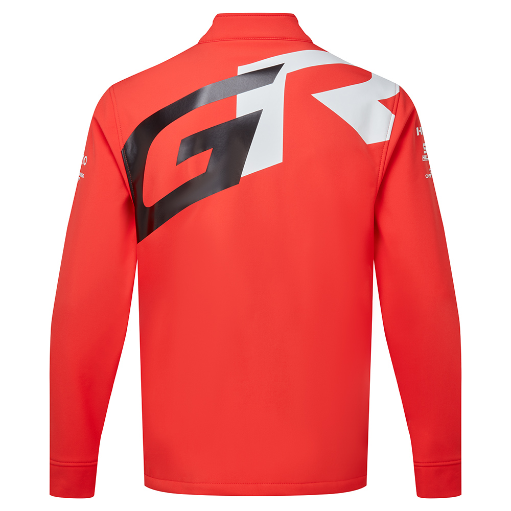 The TOYOTA GAZOO Racing Rally Raid Team Softshell Jacket provides unmatched comfort and sophisticated style. Its features include a robust full metal zip, two interior slip pockets and a dynamic GR print on the back, high-quality fleece lining and elastic cuffs. The jacket also showcases distinct branded neck tape, zip pulls, and prominent team and sponsor logos, enhanced by white panel detailing. It is an essential attire for racing aficionados and style-conscious individuals, highlighting its importance as a significant style statement.