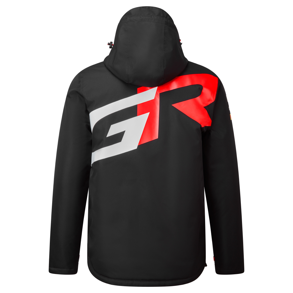 The flagship TOYOTA GAZOO Racing's mountain jacket is designed to protect you from the elements. Fully taped-seams in a waterproof-breathable performance fabric with a bit of stretch offering greater freedom of movement. Features an integrated adjustable hood, waterproof branded zips throughout, contrast detailing to the cuffs and red front zipped hand pockets. Finished with white shoulder panels, the GR logo on reverse and the 2023 team logos to the front, back and sleeves.